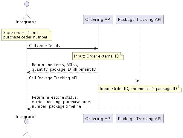 Amazon Business provides a package tracking solution that enables you, as an integrator or developer, to monitor Amazon Business package statuses through the following mechanisms: